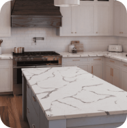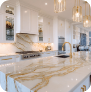 Quartz surfaces are ideal for kitchens and worktops where durability and low maintenance are essential. Engineered to withstand daily use, quartz offers both strength and visual consistency.